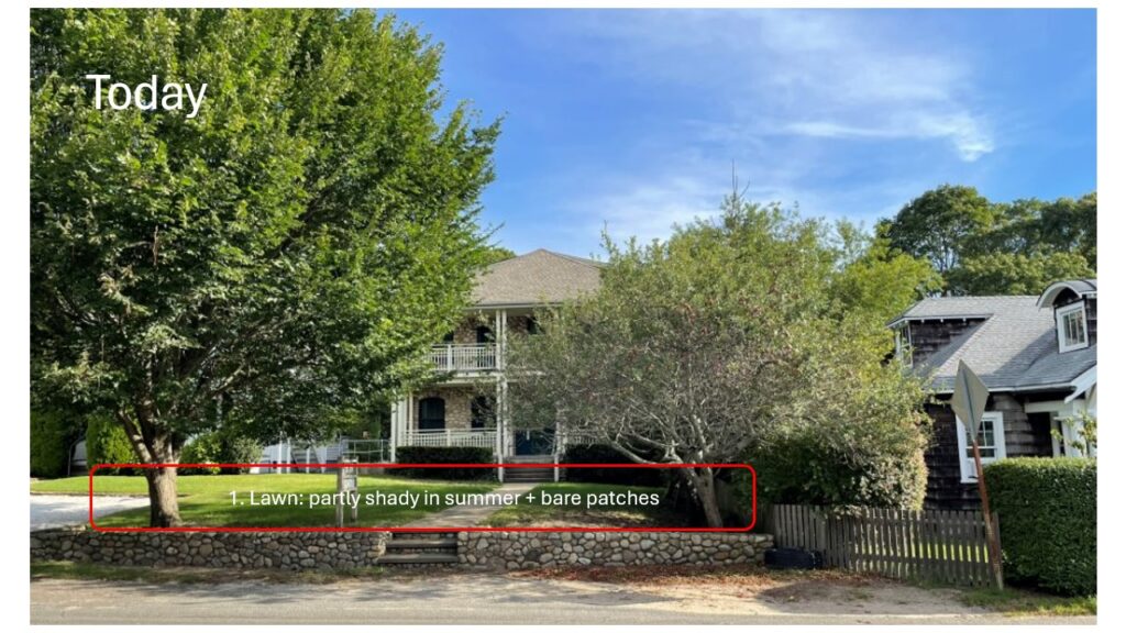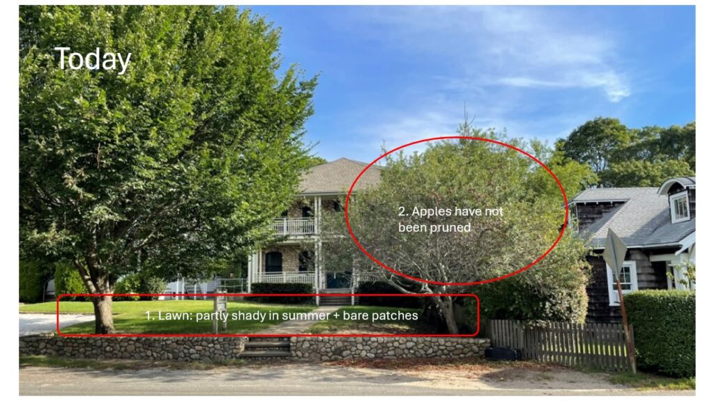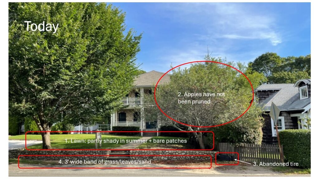 - An Edible Foundation featuring beach plums and Nantucket shad, replacing non-native yews.