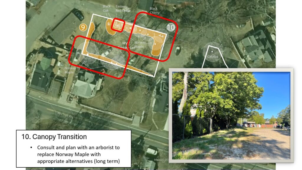 - A long-term Canopy Transition plan to replace a Norway maple with more ecologically appropriate species.