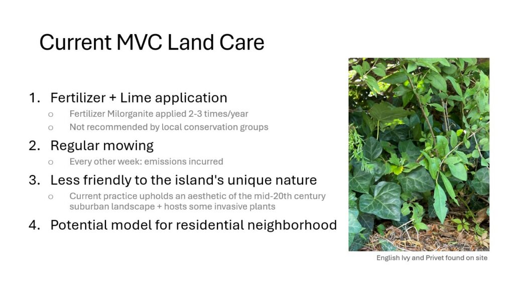 By replacing high-input lawn areas and invasive plants with native perennials, beach plums, meadow plantings, wildlife features, and pollinator habitat, the Commission’s grounds are becoming a model for what climate-resilient landscaping can look like on Martha’s Vineyard.