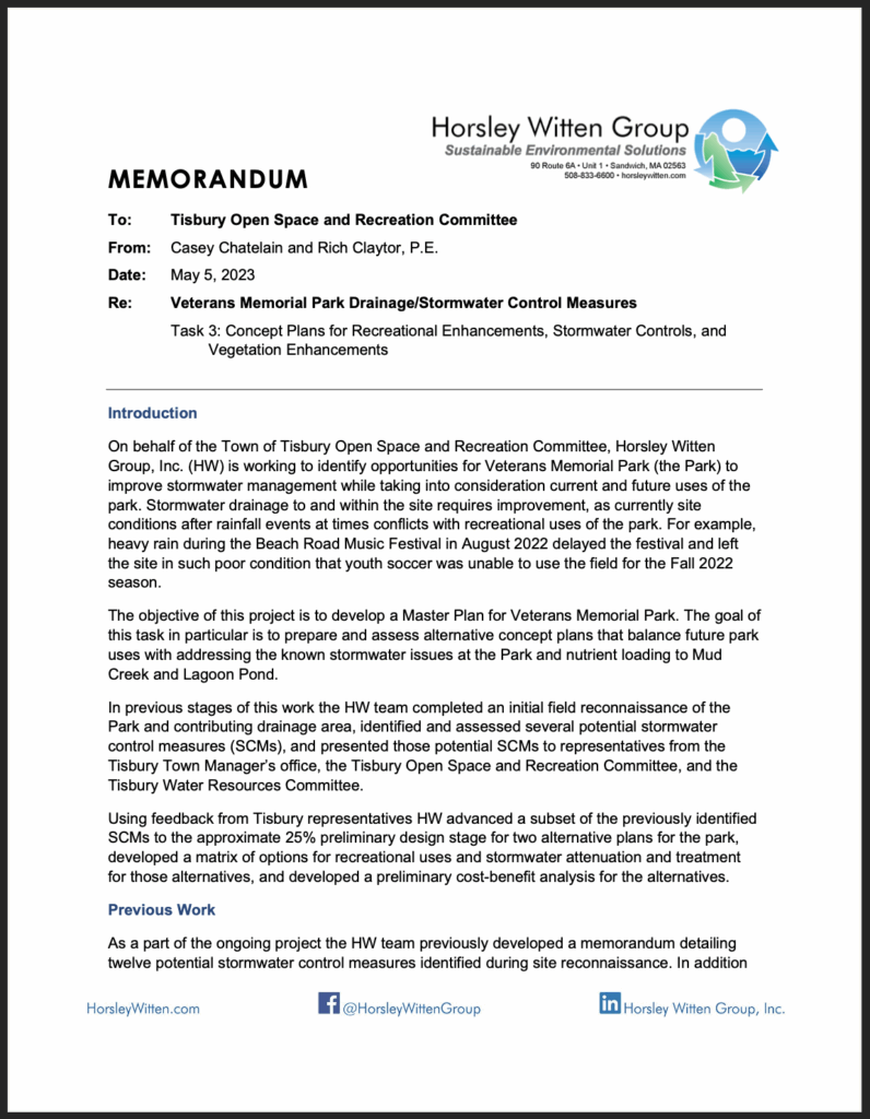 - Report prepared for Town of Tisbury Open Space and Recreation Committee